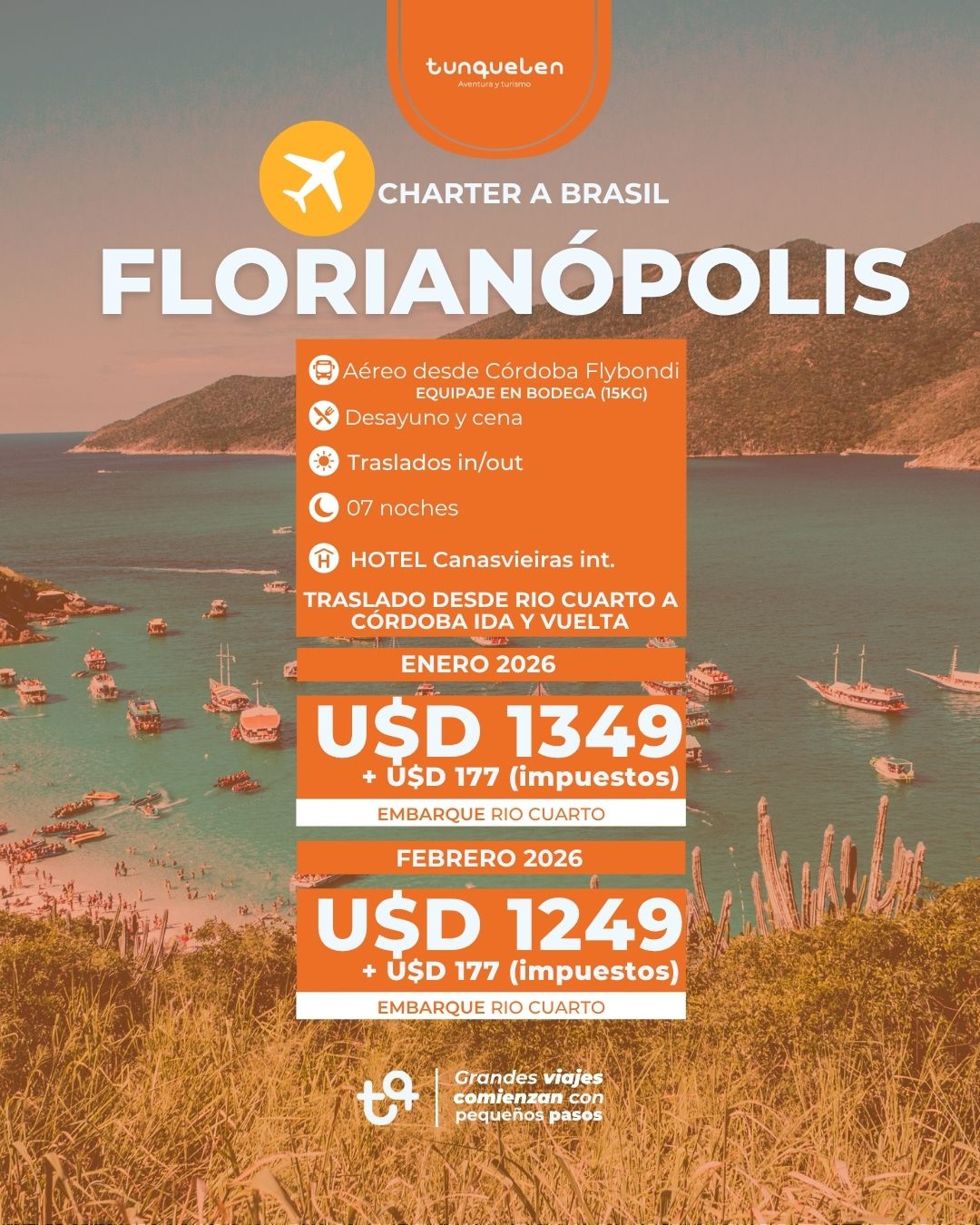 ¡CHARTER A BRASIL - ENERO Y FEBRERO! FLORIANOPOLIS CON DESAYUNO Y CENA - HOTEL CANASVIEIRAS INT. CAMBORIU CON DESAYUNO Y CENA - HOTEL ILHA DE MADEIRA